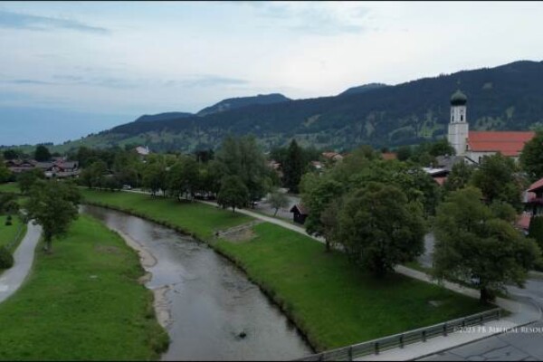 A drone video of water flowing under a bridge. Comes in 3 versions.